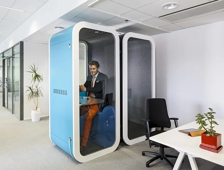 Sessiz kabinler, kalabalık açık ofislerde kişisel, konforlu ve çok yönlü alanlar yaratmak için idealdir.