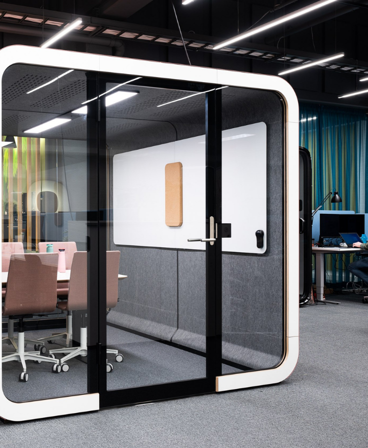 Sessiz kabinler, kalabalık açık ofislerde kişisel, konforlu ve çok yönlü alanlar yaratmak için idealdir.